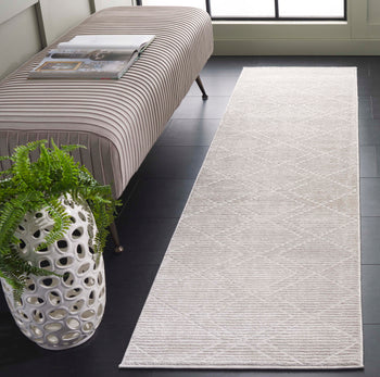 The distinguished pattern of this rug features a subtle geometric diamond motif, lending an air of understated elegance and a touch of modernity, perfect for a variety of settings from hallways to bedrooms.