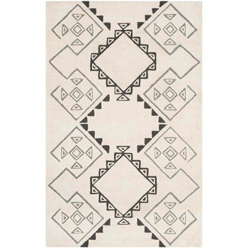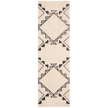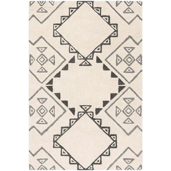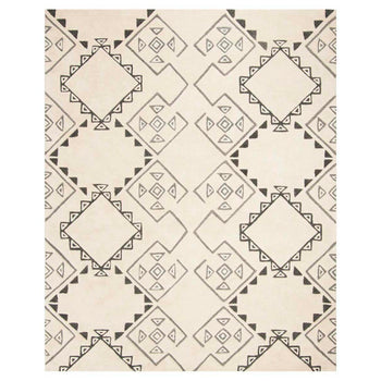 The color palette of ivory and grey exudes a serene and versatile aesthetic that seamlessly integrates with any decor, from contemporary to classic. Adorned with a captivating geometric pattern, the design of this rug features bold, symmetrical shapes that create a sense of harmony and balance in your space.