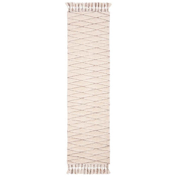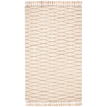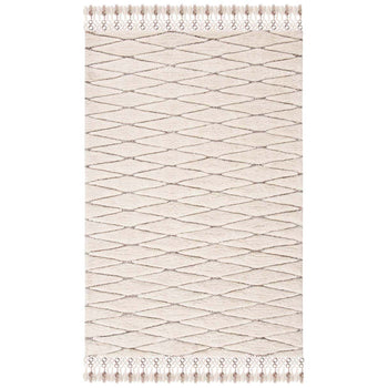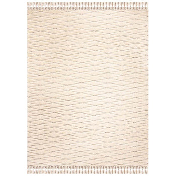 The rug's intricate design weaves together rich tones of ivory and brown, creating a sophisticated shag-style pattern that captivates the eye and adds a dash of timeless elegance to your surroundings. The pattern, as depicted in the image, showcases a unique and harmonious geometric sequence that exudes a sense of rhythm and movement, bringing both visual appeal and textural depth to your floors.