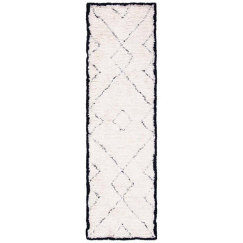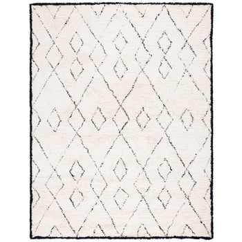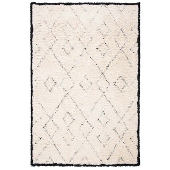 Embracing a Shag & Flokati style, the rug features a timeless ivory base that exudes serenity and warmth, while the bold black diamond trellis pattern injects a contemporary touch that's versatile yet striking. Each pattern detail is carefully tufted by skilled artisans, adding depth and texture that enhances the visual interest and tactile appeal.