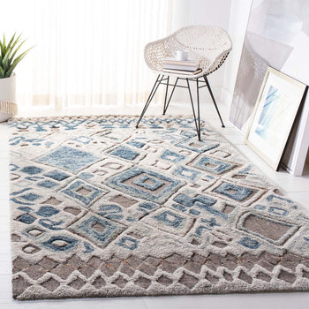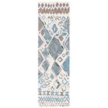 Adorned with a captivating pattern that fuses beige and navy hues, this runner presents a modern take on the traditional Shag & Flokati style. The design features a harmonious combination of geometric motifs and abstract elements, creating a visual narrative that is both inviting and intriguing.