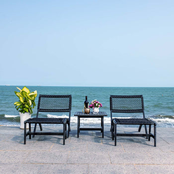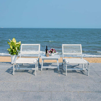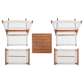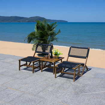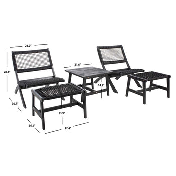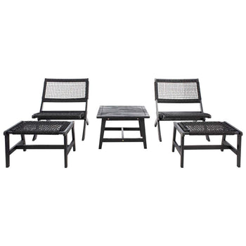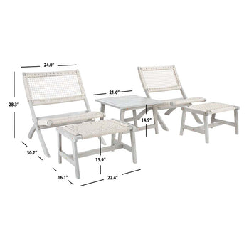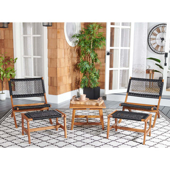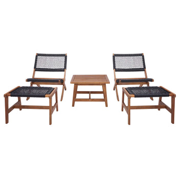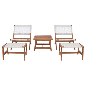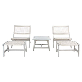 This Casella Set allows you to stretch out and enjoy the summer breeze with ease and style. Two natural wood chairs and matching ottomans allow for lavish lounging in the sunshine, and an end table provides ample space for coffees, cocktails, or snacks.