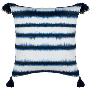 It's poetry in motion. The Safavieh Cassia Pillow makes a stunning contemporary artistic statement with its streaks of navy blue and white. Designed with carefree tassels that frame its gently blurred lines, its bold tie dye style adds laid back luxury to any living room or bedroom.
