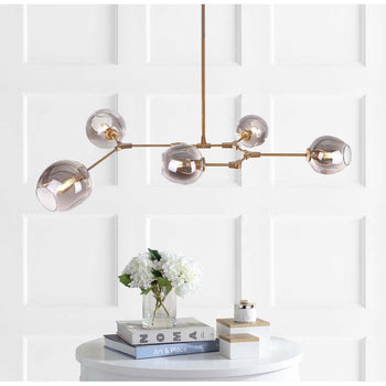 A modern masterpiece, this contemporary pendant instantly elevates any interior. Ideal for the living room or dining area, the grey polished metal finish on its chic globes reflects light to create a gentle glow. Designers love its vintage style charm.
