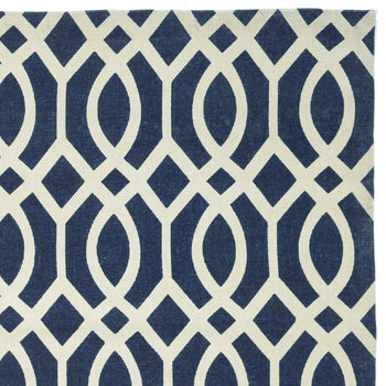 The intricate geometric pattern, drawn from the image provided, features crisp ivory lines creating a series of interconnected shapes against a deep navy backdrop. This creates a dramatic contrast that captures the eye, perfect for adding a point of interest to your interior design.