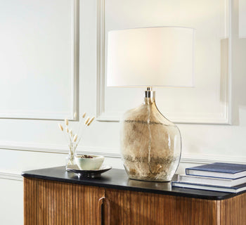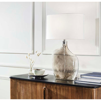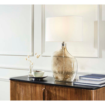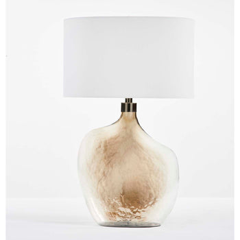 An ethereal expression of modern art, this Celensa Table Lamp embodies the essence of elegance. Celensa's creatively contoured glass body abounds with a flowing sense of motion, its intriguing mixture of gold and silver tones further enhancing its diaphanous depth.
