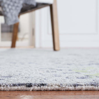 The mesmerizing design features a sophisticated palette where vibrant green hues gracefully emerge from the delicate white and gray patterns, giving your space a touch of elegance and contemporary style. Each intricately hand-knotted strand tells a story of traditional craftsmanship blended with modern aesthetic, creating a piece that is as much a work of art as it is a functional element of your decor.