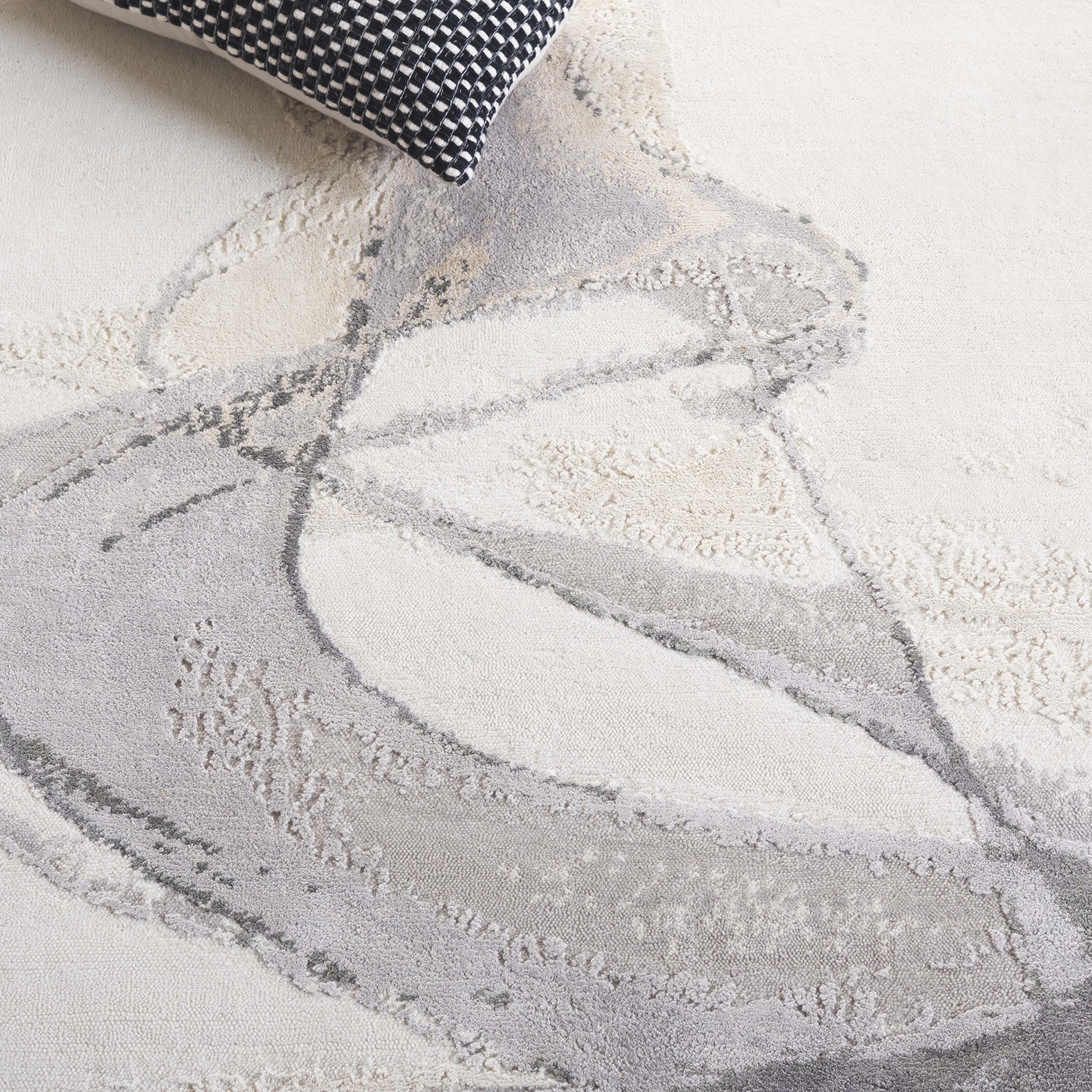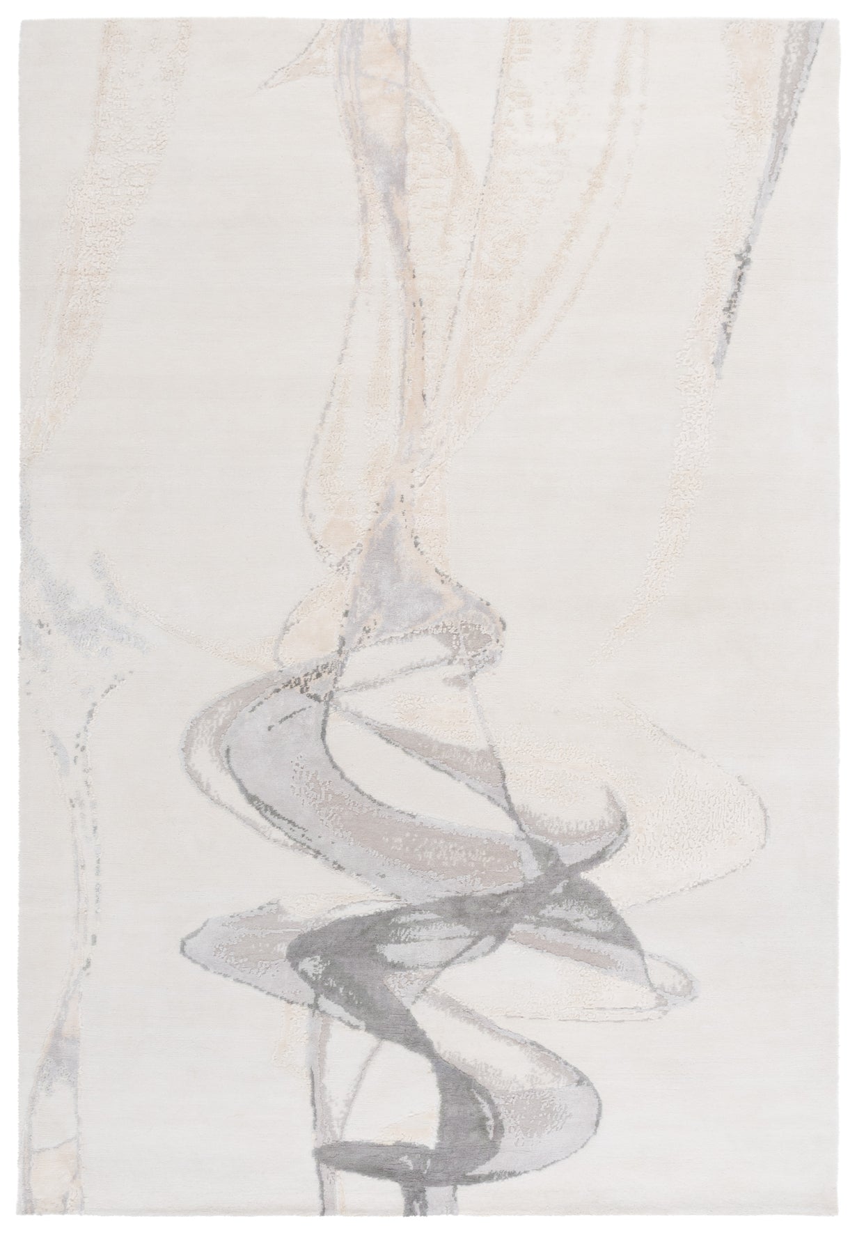 Presenting our luxurious 8'-0" x 10'-0" Modern Style Area Rug. It's an impeccably crafted large rectangle accessory that adds a generous measure of sophistication to any space. Hand-knotted using a blend of 55% wool, 30% silk and 15% cotton, this rug showcases the highest standard of craftsmanship and quality from India. Boasting a stylish Grey/Ivory color palette, it effortlessly sets the mood of your space while being versatile enough to blend well with various decor styles. The rug boasts a comfortable 3/8" height, providing plush comfort underfoot. Bring home this elegant blend of functionality and aesthetic appeal today!