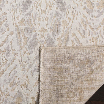 Drawing inspiration from the image, the rug features a sophisticated pattern that exudes a sense of depth and dimension. The subtle variations in the silver tones gracefully complement the ivory backdrop, offering a design that is both intricate and harmonious.