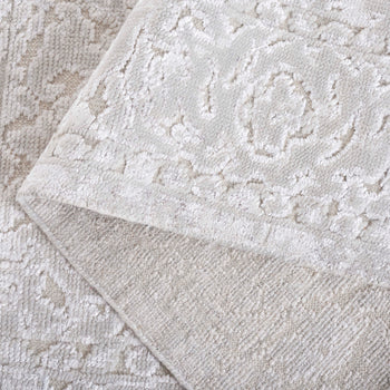 Crafted from a luxurious blend of 65% wool, 20% viscose, and 15% cotton, this rug promises both comfort and durability. The wool composition lends a soft and plush feel underfoot, while the touch of viscose imparts a subtle sheen, enhancing the rug's visual depth. Cotton reinforces the structure, ensuring that the rug retains its shape over time.