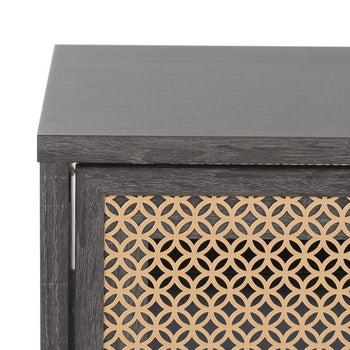 Bring elevated style and functionality to your living space with our stunning Ceu coffee table. A streamlined design and mixed material elegance lend a chic and inviting presence to the coffee table. Its sleek, rectangular tabletop and tapered legs vouch for a modern appeal. It highlights the rich grains of wood to create a stunning contrast with the intricate gold metal work to offer a refined touch of luxury. Sophisticated and detail-rich, our coffee table features two sliding cabinets to organize and keep your essentials within easy reach.