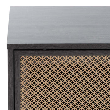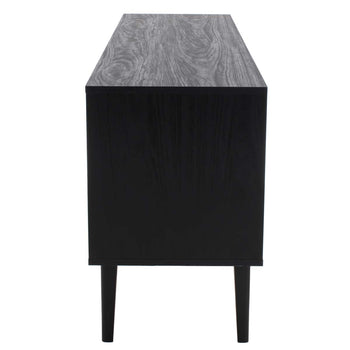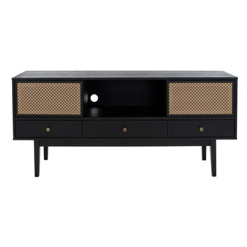 Rich Tones And Traditionally Inspired Details Give This Contemporary Ceu 3 Drawer Media Stand Its Elegant Character. Ceu's Black Finish Is Beautifully Highlighted By Intricate Gold Guilloche Lattices That Frame Its Open Shelf, Providing Stylish, Easy Access Storage In Any Living Room Or Entertainment Area.