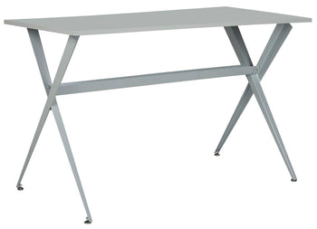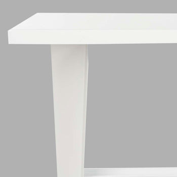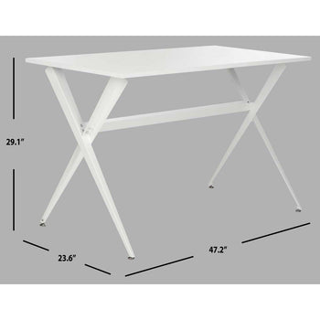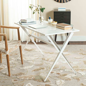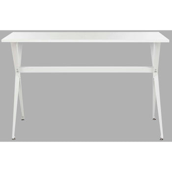 The light and airy silhouette of the red Chapman desk is a modern update of classic picnic and refectory tables. Its top appears to float on chic tapered crossed legs, and this sophisticated desk is finished in a sleek lacquer look finish.
