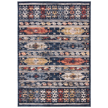 Artfully crafted in Turkey using a power-loomed technique, this rug combines a durable construction of 68% polypropylene, 24% jute, and 8% latex, ensuring longevity and easy maintenance. The vivid navy and ivory colors harmonize to create a stunning bohemian tapestry that brings depth and warmth to any room.
