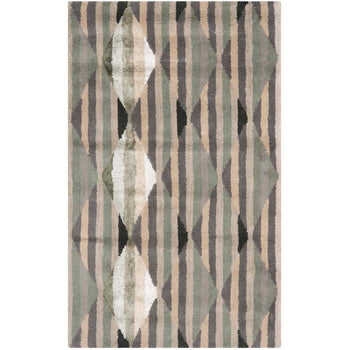 Crafted with meticulous care in India, this rug boasts a unique geometric pattern that exudes a modern and contemporary style. Its robust construction ensures longevity, while the soft wool material offers a luxurious underfoot experience.