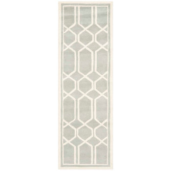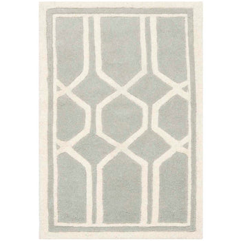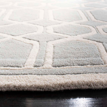 Introduce timeless elegance to your home with this exquisite hand-tufted wool area rug. Expertly crafted in India, this luxurious accent piece in size 2'-3" X 5' boasts a plush height of 1/2", perfect for adding a soft, inviting touch to any room. The refined grey and ivory color palette effortlessly complements a range of interior styles, while the intricate geometric pattern creates an eye-catching statement.