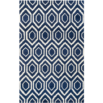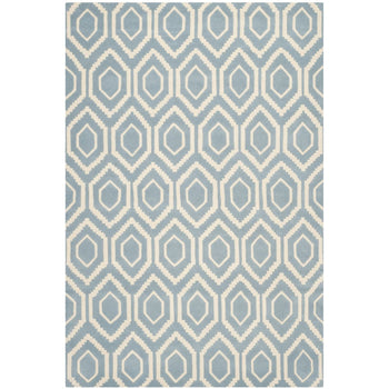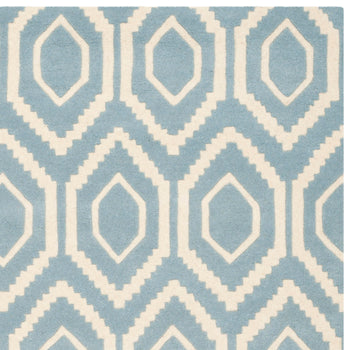The serene palette of blue and ivory intertwines to create an engaging pattern, reminiscent of traditional designs with a contemporary twist. The geometric pattern displayed in the image is a testament to the meticulous attention to detail, offering a bold yet sophisticated aesthetic that can complement various interior themes.