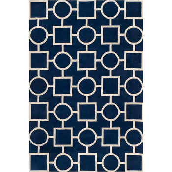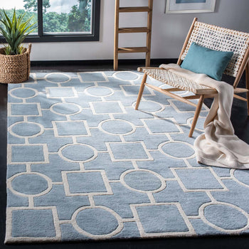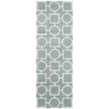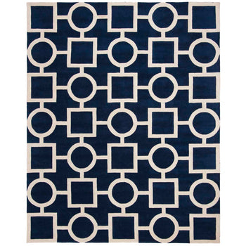 Featuring a tranquil blue and ivory color scheme, the rug is adorned with an eye-catching geometric pattern that will infuse a touch of elegance into any room. The bold contrasts and sophisticated design make this rug a versatile piece that complements both modern and classic interiors.