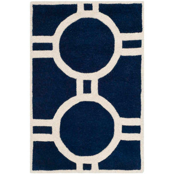 Elevate your living space with the timeless elegance and sophistication of our exquisite 2' x 3' Dark Blue/Ivory Accent Area Rug. Masterfully hand-tufted in India, this woolen masterpiece boasts a plush 1/2" pile height, offering a sumptuous underfoot experience and unparalleled durability.