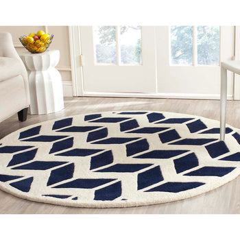 Each strand of wool is meticulously tufted by hand to create a plush, luxurious pile that feels soft underfoot and provides a layer of comfort to any room. The sophisticated blue and ivory color palette is on-trend yet timeless, making it an excellent addition to a variety of decors.