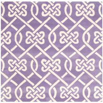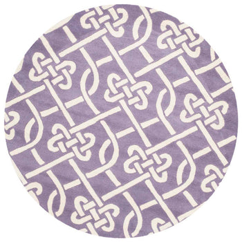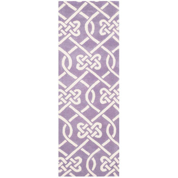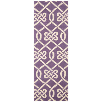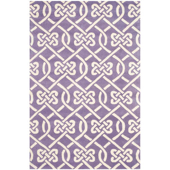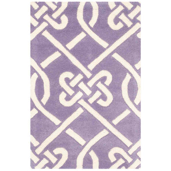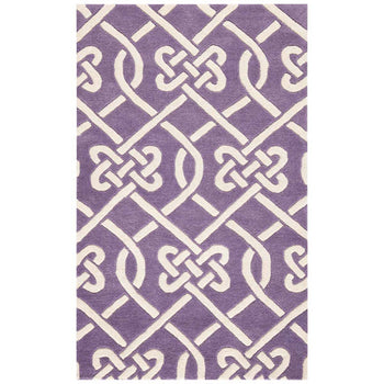 Introducing our exquisite 2' x 3' accent area rug, a timeless addition to any room seeking a touch of elegance and warmth. The beautiful interlocking pattern in rich purple and crisp ivory hues adds a regal and sophisticated air to your space.