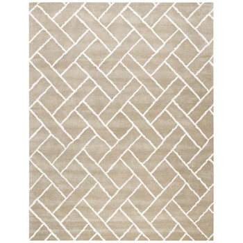 Elevate your living space with our exquisite 2' X 3' accent rug, meticulously hand-tufted in India from the finest wool. The enchanting beige and ivory color palette creates a soothing foundation that complements a range of interior styles. The intricate geometric pattern adds a touch of elegance and modern flair, making this rug an eye-catching addition to any room.