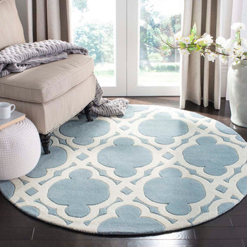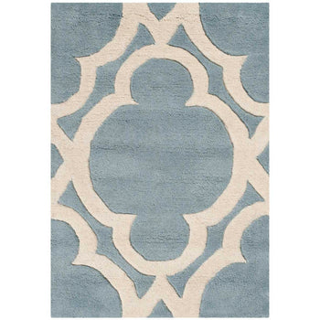Transform your space with the elegance of our hand-tufted accent rug. Expertly crafted in India, this 2' X 3' woolen masterpiece brings the luxurious feel of pure wool underfoot. The delightful interplay of serene blue and classic ivory hues presents a harmonious blend, lending a soothing touch to any room.