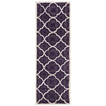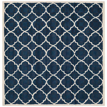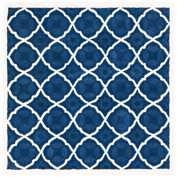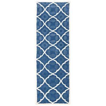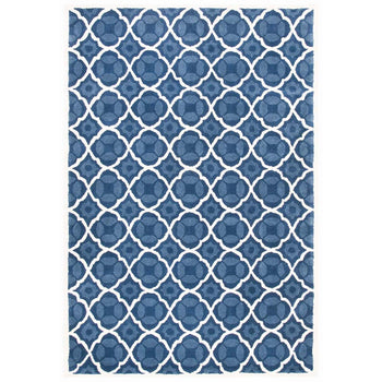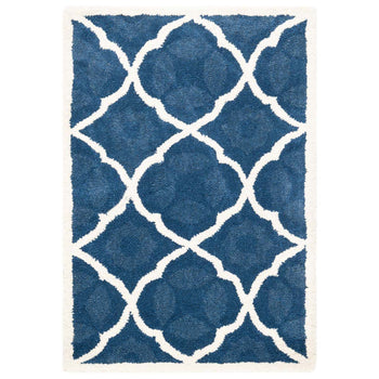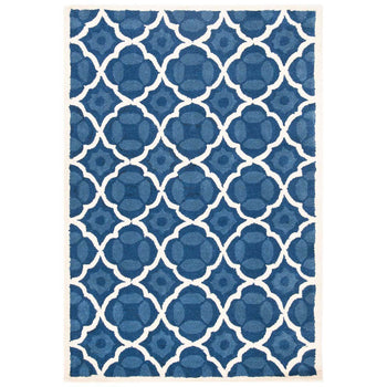 The intricate pattern of this rug features a mesmerizing lattice design in a bold blue hue, contrasted by ivory accents that create an alluring visual effect. The hand-tufted technique used to create this piece not only adds to its visual appeal but also to its quality, making it a standout accent in any room.