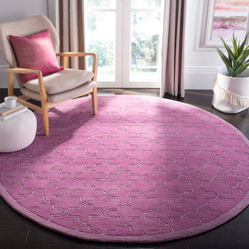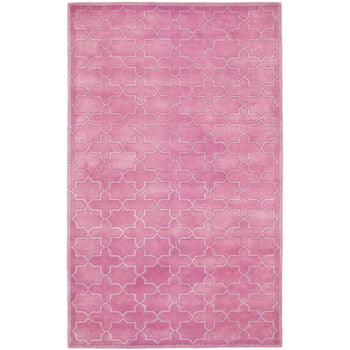 The rug is drenched in a delightful shade of pink, providing a warm and inviting ambiance to any room it graces. Its timeless style is accentuated by a captivating geometric pattern that exudes a sense of elegance and refinement. The harmonious blend of the trellis design set against the plush pink canvas creates an eye-catching juxtaposition that is both classic and contemporary.