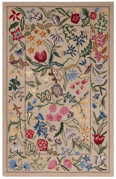 The traditional style of this rug, as depicted in the image, displays an intricate design blending an array of colors, from deep reds to tranquil blues set against a creamy ivory background. Each flower and leaf is a stroke of artistry, making the rug not just a piece of decor but a work of art that complements both contemporary and classic interior designs.