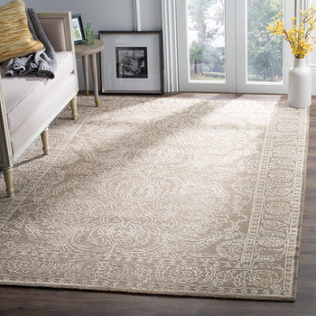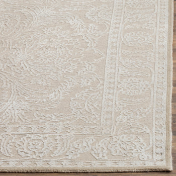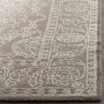 Elevate your space with the timeless craftsmanship of our Hand-Knotted Wool and Bamboo Silk Area Rug. This luxurious 6' X 9' medium rectangle rug features a sophisticated stone grey and pearl color palette, perfectly suited to enhance any room with its understated elegance.