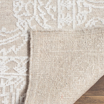 Proudly made in India, the rug boasts a height of 1/8" and incorporates expert hand-knotted techniques to ensure both durability and detail. The exceptional blend of wool and bamboo silk lends a subtle sheen and incredibly soft touch, ensuring comfort underfoot without sacrificing on style.