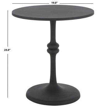 Enrich your home with the classy and elegant appeal of our Ciri round accent table. Our table refines and updates a traditional stem table to bring a dose of charm to your home. Its shapely pedestal profile is accented with tiered rings to attain a sculptural presence. Casted entirely in aluminum, our table remains a lightweight and space-friendly addition to your home. Its versatile appeal is accentuated with a matte black finish to become a handy surface for your living area or bedroom.