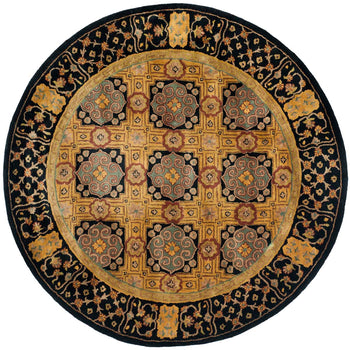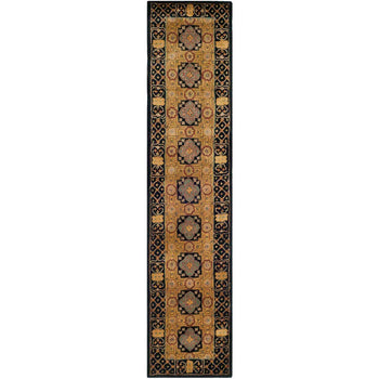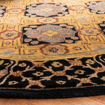 The rug features a rich and opulent color palette of gold and black, imbuing your space with a sense of sophistication and grandeur. The bold black border frames the golden center meticulously adorned with intricate patterns, reflecting an air of traditional charm while maintaining a contemporary edge.