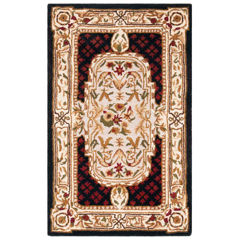 Elevate your living space with the exquisite charm and timeless elegance of our 2' x 3' accent rug, meticulously crafted by skilled artisans in India. This luxurious hand-tufted wool masterpiece boasts a sumptuous burgundy base enlivened by an intricate array of traditional motifs, framed by an ornate border that exudes a classic allure. Each fiber of this rug has been thoughtfully selected and woven to create a piece that is not only aesthetically delightful but also enduringly durable.