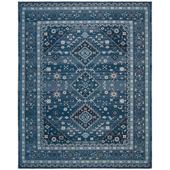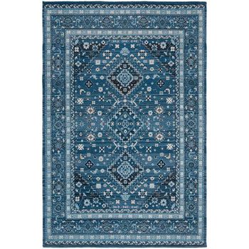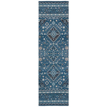Introducing our exquisite Power Loomed Runner Rug, a seamless blend of traditional charm and modern durability. Crafted in the vibrant hues of blue and charcoal, this rug is a statement piece designed to enrich your living space with its dynamic pattern and rich texture.