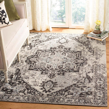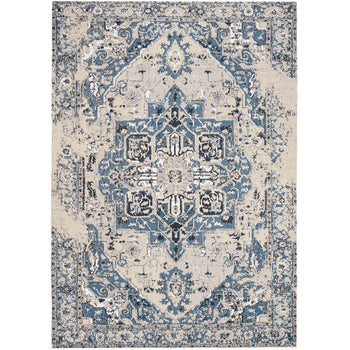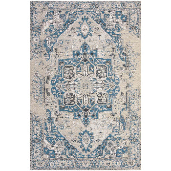 The pattern portrayed in the image illustrates an aged heritage motif, seamlessly marrying the old-world charm with modern aesthetics. The distressed appearance gives the rug an authentic vintage feel, making it an ideal choice for those looking to add character and warmth to their home. Perfect for your living room, bedroom, or even a stylish office, this area rug is not just a floor covering but a statement piece that reflects a blend of sophistication and authenticity.