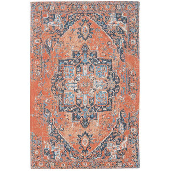 Introducing our exquisite 3' X 5' small rectangle area rug, a striking blend of contemporary style and traditional design elements that will infuse your living space with a touch of elegance. Crafted with meticulous attention to detail, this rug showcases a vibrant orange base thoughtfully complemented by navy accents, creating a visually stunning contrast that demands attention.