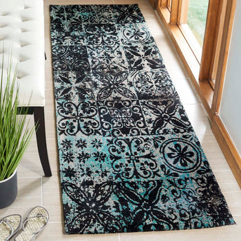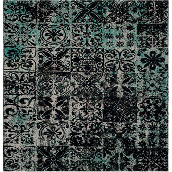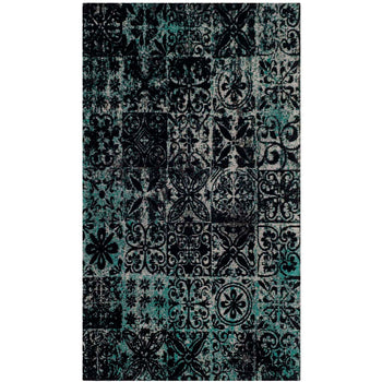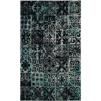Introducing our exquisite 3' X 5' area rug, a harmonious blend of deep teal and bold black hues crafted to adorn your space with a touch of sophistication. This small rectangular masterpiece boasts a captivating pattern, reminiscent of timeless motifs that echo the grandeur of ancient civilizations.