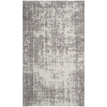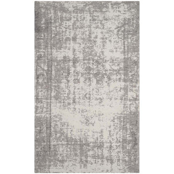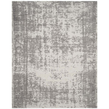 The rug's color palette features a stunning interplay of Silver and Ivory ? colors that evoke a sense of calmness and serenity while offering a versatile look that complements any interior design theme. The contemporary style is gently expressed through the rug's unique pattern, revealed in the image provided. Its abstract design hints at a deconstructed chic, evoking the impression of an artist's canvas that will surely captivate the eyes and become a conversation starter.