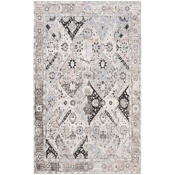 The rug's pattern, inspired by classic design elements, showcases intricate motifs and decorative borders that speak to its traditional heritage. The refined palette and distinctive design make it an ideal choice for those looking to infuse their space with a sense of history and artistry.
