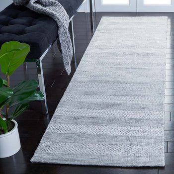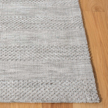 Bring home this timeless piece of artistry, and indulge in the comfort and style it brings to your living space. Whether it's placed in a cozy home office, under a coffee table in the living room, or as a welcoming touch in an entryway, this grey, hand-loomed area rug