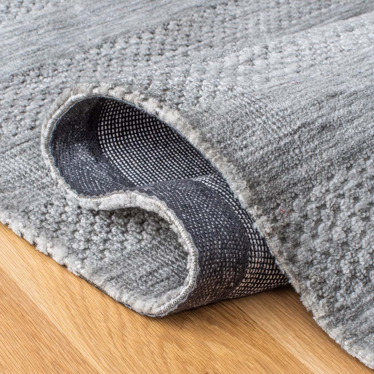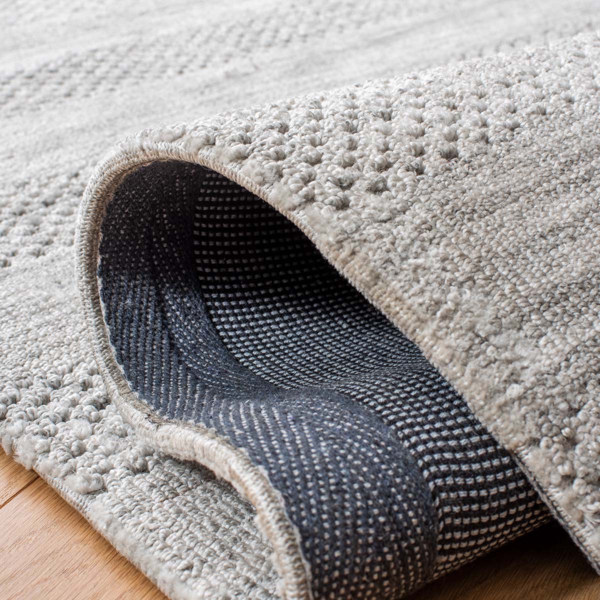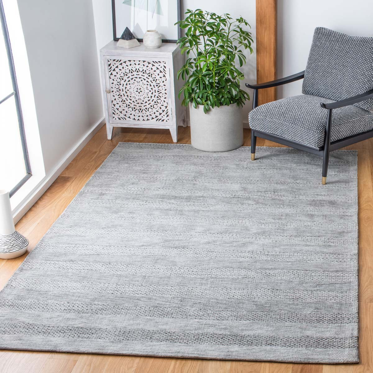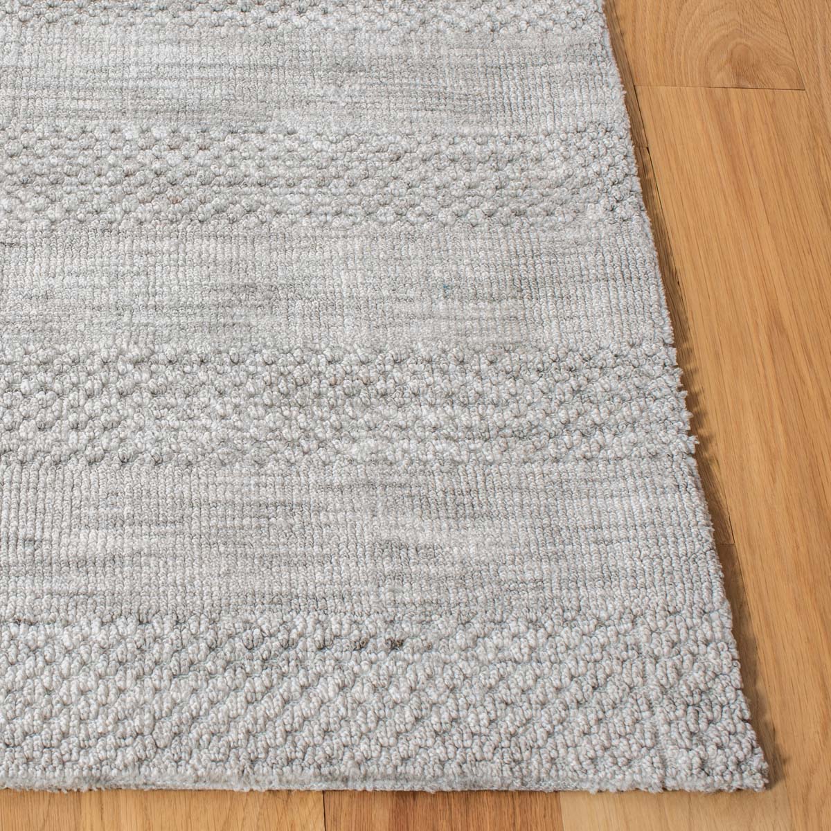 Introducing our exquisite, hand-loomed area rug, a seamless blend of enduring design and superior craftsmanship. Sized at a versatile 3' X 5', this small rectangle rug is a perfect addition to any space that demands a touch of elegance and warmth. The subtle hues of grey create a serene and inviting atmosphere, making it an ideal choice for both contemporary and traditional interiors.