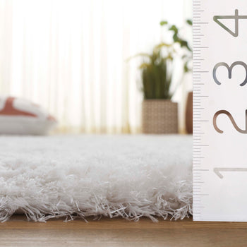 Indulge in the opulence and sophisticated craftsmanship of our white shag rug? A timeless investment for any discerning homeowner