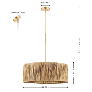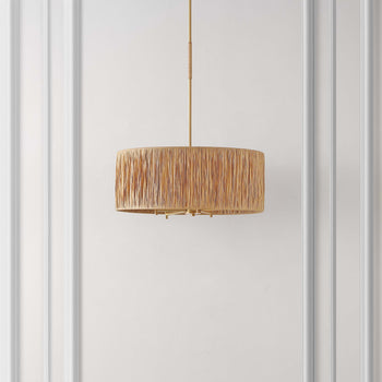 Give a chic and breezy update to any room with our Colessa extendable pendant. Beautifully combining the streamlined style of a drum shade with fresh textures, our pendant stands out with its charming and laid-back appeal. It is wrapped in clean lines in a warm natural finish and gold hardware to offer endless visual appeal. Including 5 lights, our pendant light serves as a radiant and inviting focal point for a living room, entryway, or dining area.