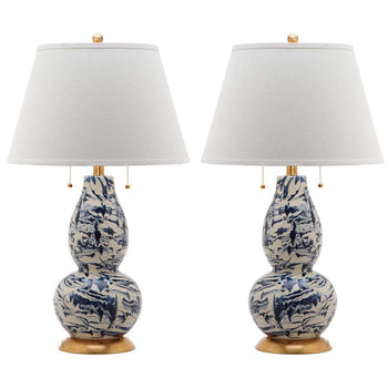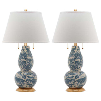 Give your home the sophisticated designer look with this elegant Color Swirls Table Lamp. Crafted of glass and artfully marbleized in navy and white, this set of two lamps is ideal for any interior with its gold fittings and white cotton empire shade.