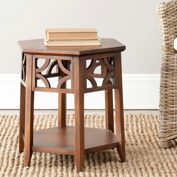 The Connor Hexagon End Table has six times the charm. This petite, light brown accent table brings a soft, modern touch to any interior. Crafted with bayur wood, Connor is a solid investment in style.