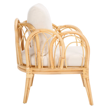 Elevate your living space with a touch of timeless elegance. Our latest collection of Coralie Accent Chairs offers the simplicity and charm of natural materials, seamlessly blending into any decor scheme. Each chair is crafted with care, featuring ethereal white fabric cushions that sit atop a meticulously woven rattan frame. The soft foam filling provides a comforting embrace as you unwind, making it a delightful addition to your seating arrangement. Embrace the beauty of simplicity and natural design with this chic and inviting chair. Whether it's for reading a beloved book or enjoying a cup of tea, this chair offers a serene retreat in the comfort of your home.