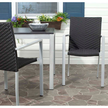A perfect balance of design and utility, the Cordova Indoor Outdoor Stacking Armchair looks as chic for fun in the family room as it does for parties on the patio. Crafted of easy care black PE wicker with an aluminum frame, Cordova is weather resistant and sold in sets of two.