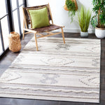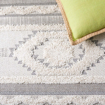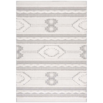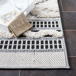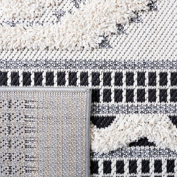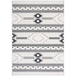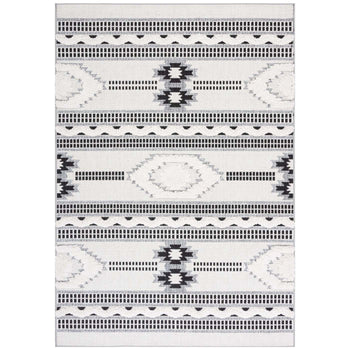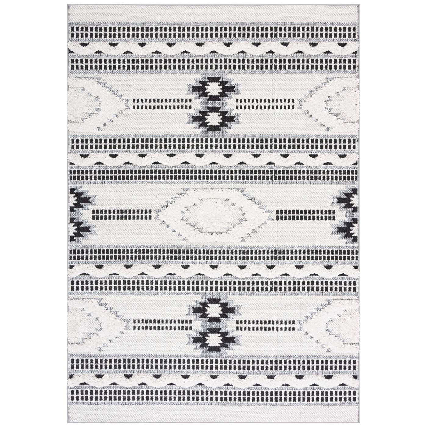 Adorn your hallway or patio with this runner?s bold, eye-catching pattern, depicted on the rug's image: an artful mingle of tribal motifs and geometric shapes that create a vibrant tapestry, set against a tranquil ivory backdrop with striking black accents. Each element harmoniously intertwines to forge a statement piece that stands out yet seamlessly integrates with a myriad of decor themes.